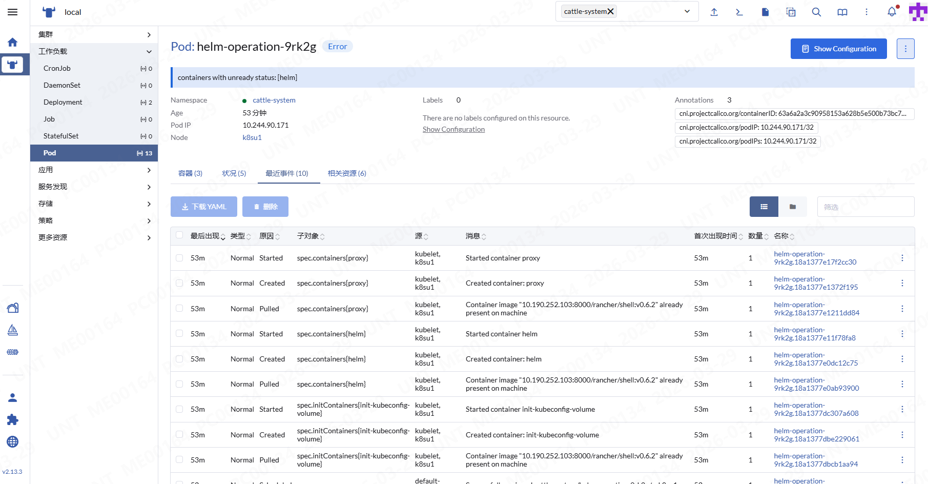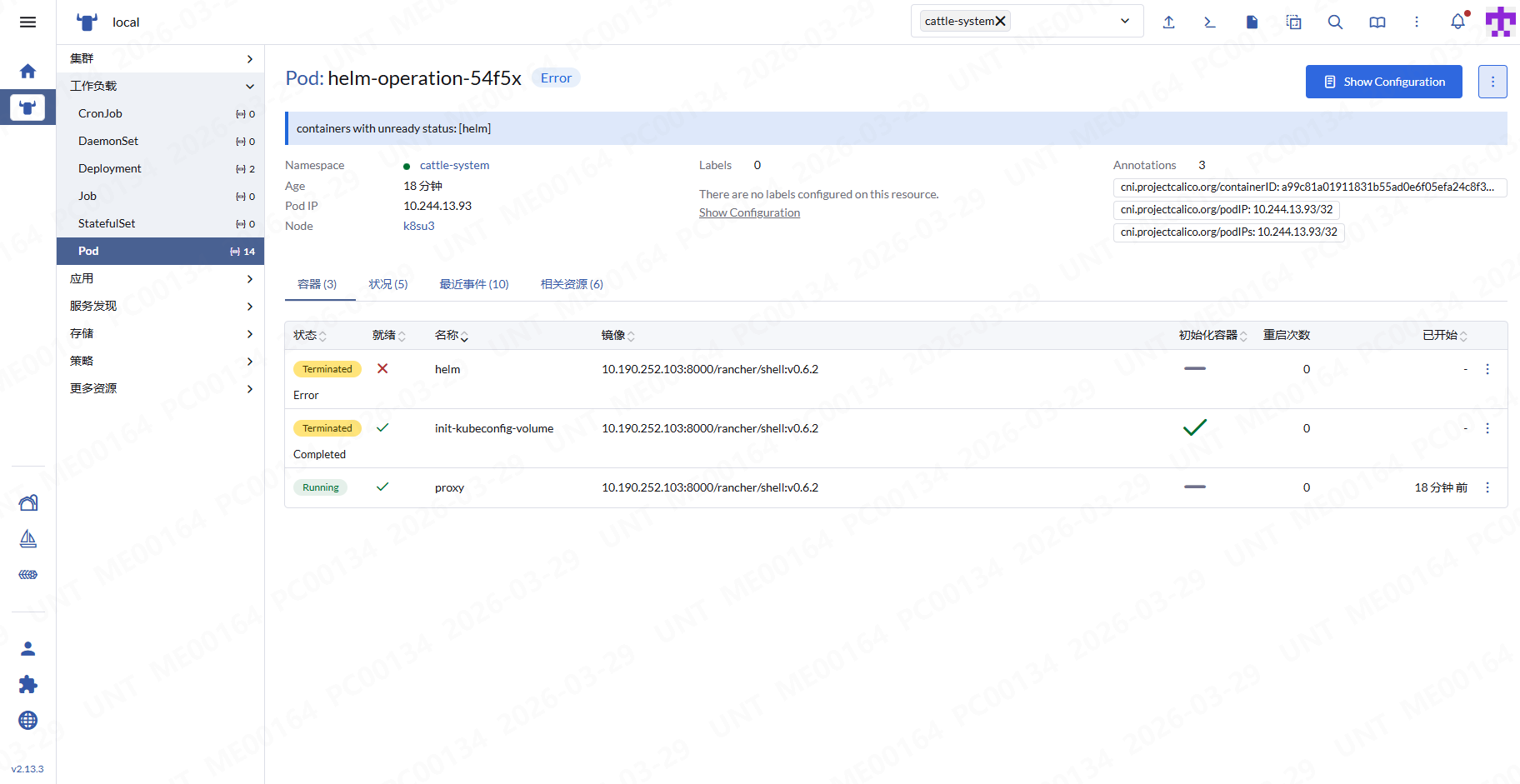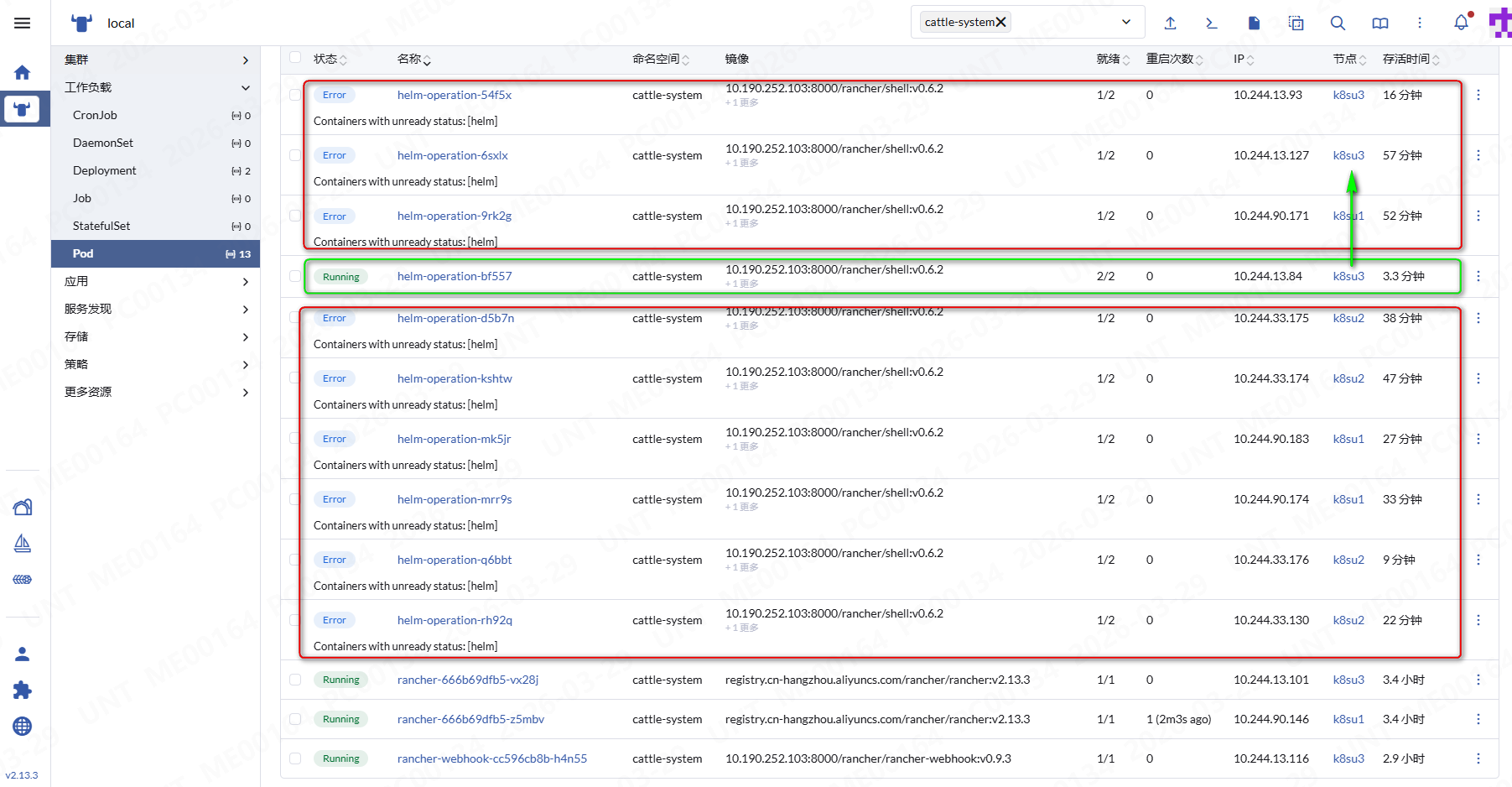 Helm部署Rancher 2.13.3 ,如图:Pod: helm-operation-54f5x Error ,这个是什么问题?image本地仓库有的。