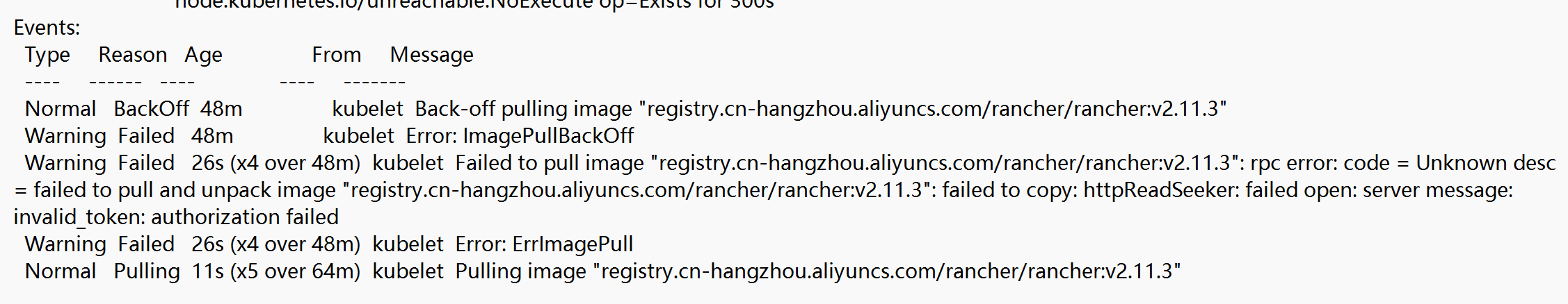 Failed to pull image “rancher/rancher:v2.9.1”: failed to pull and unpack image “docker.io/rancher/rancher:v2.9.1”: failed to copy: httpReadSeeker: failed open: server message: invalid_token: authorization failed
