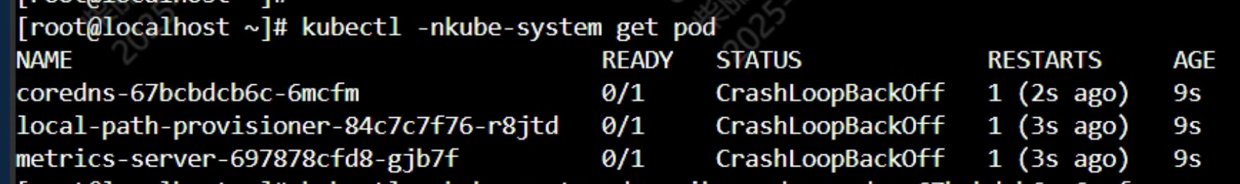 local-path-provisioner-84c7c7f76-r8jtd 0/1 CrashLoopBackOff 1 (3s ago) 9s