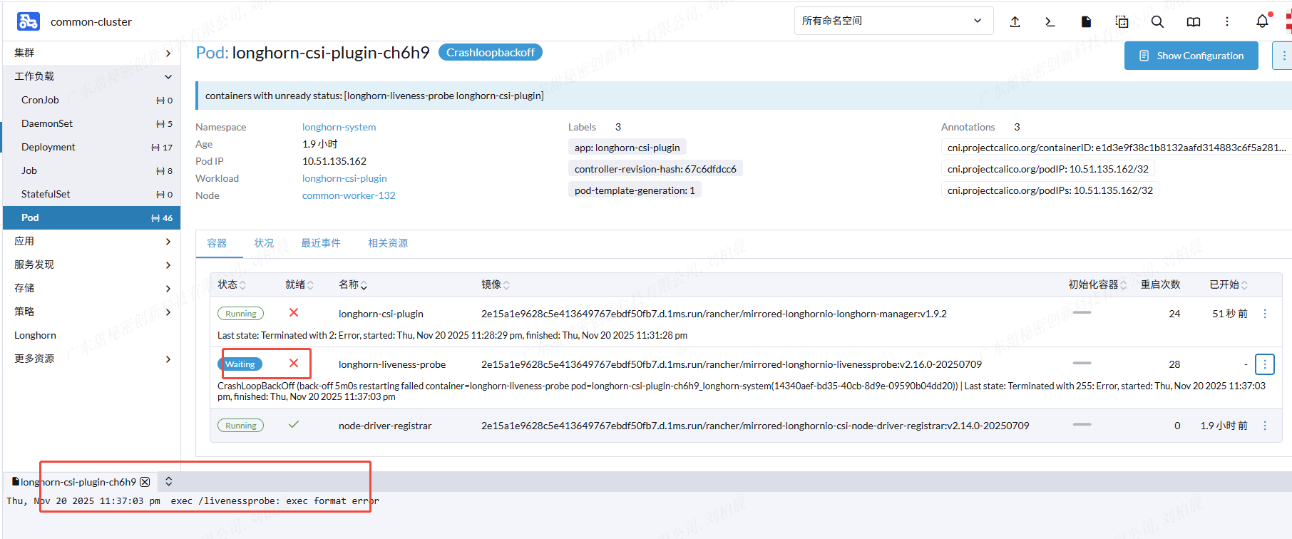 pod 一直重启 日志显示 exec /livenessprobe: exec format error