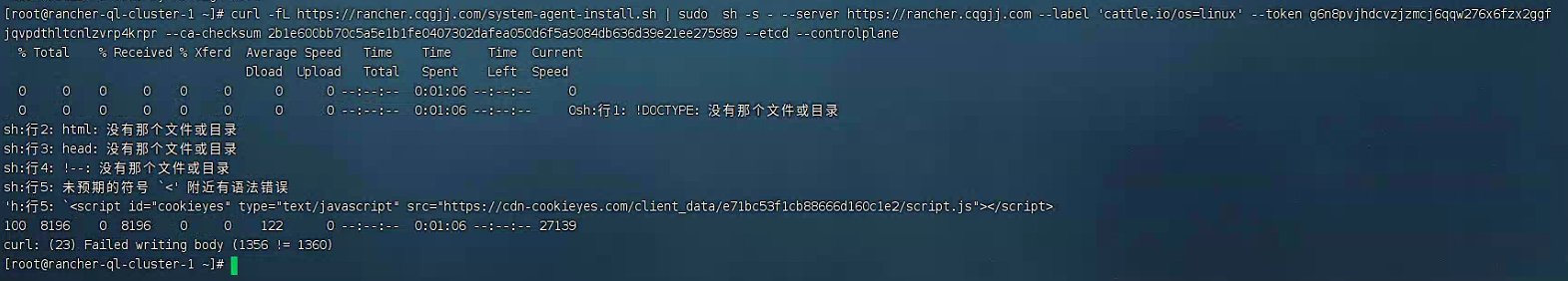 rancher界面中创建自定义下游rke2集群,注册master节点报错: