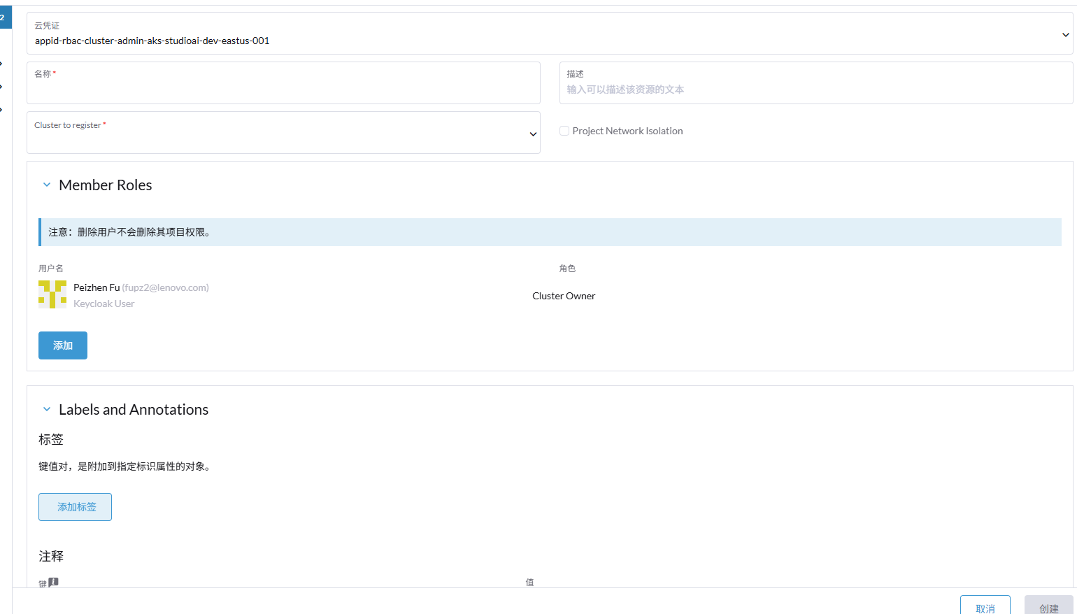 - 登录用户的角色是什么? (管理员/集群所有者/集群成员/项目所有者/项目成员/自定义):