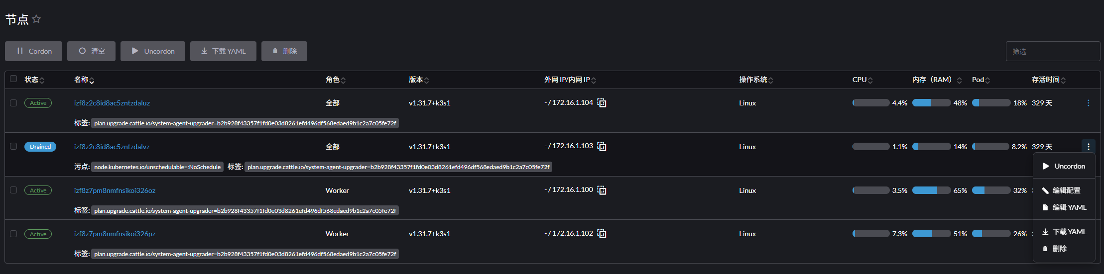 删除103节点是可以点击后面的删除按钮吗?然后等rancher调度吗?