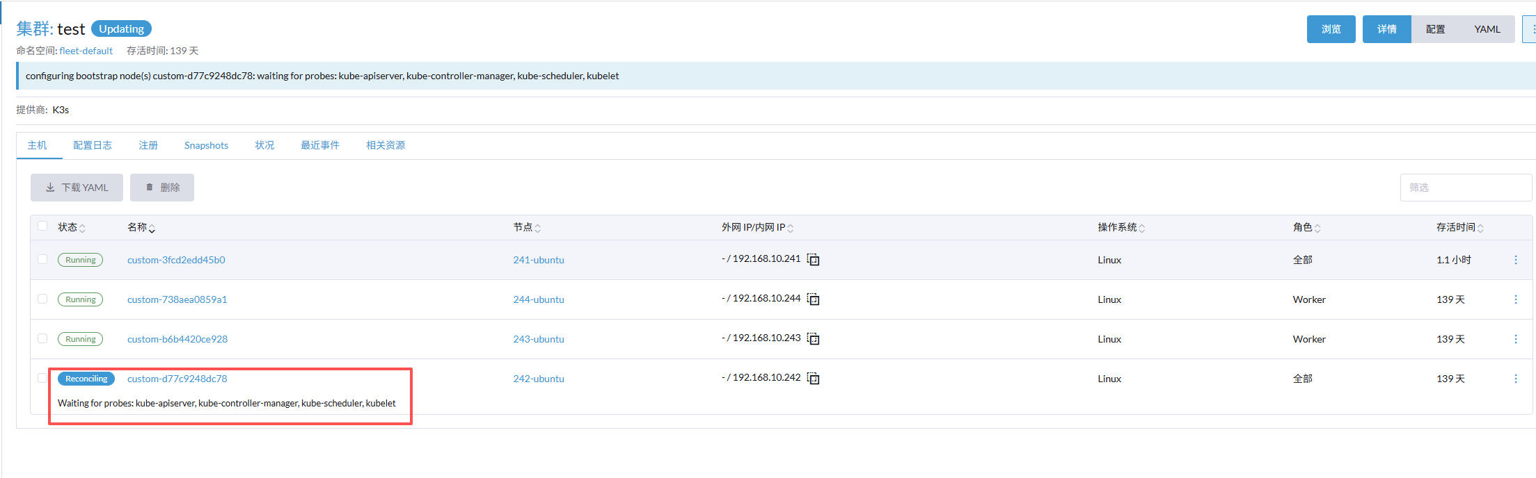 请问大佬们,这个节点角色为全部的103节点怎么删除? 我有2个server角色,需要删除103,103驱逐业务pod后,直接关机报错