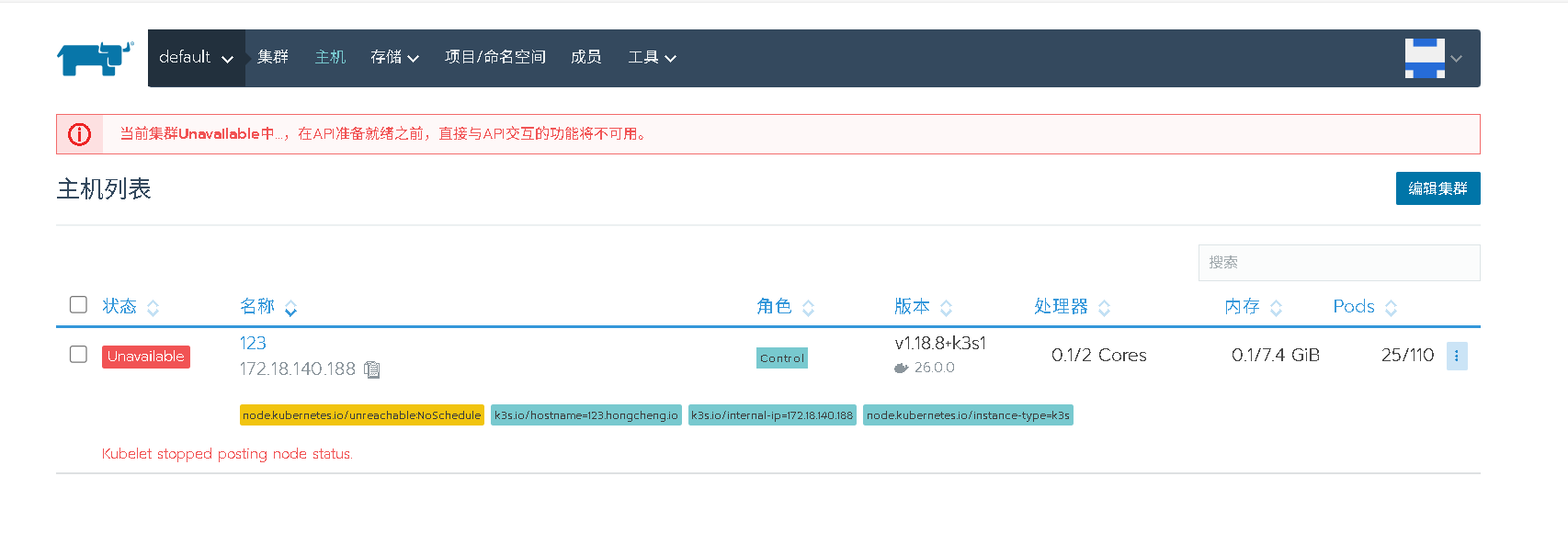 集群无法正常启动,主机提示:Kubelet stopped posting node status。具体如截图,哪位大神指导下,谢谢!