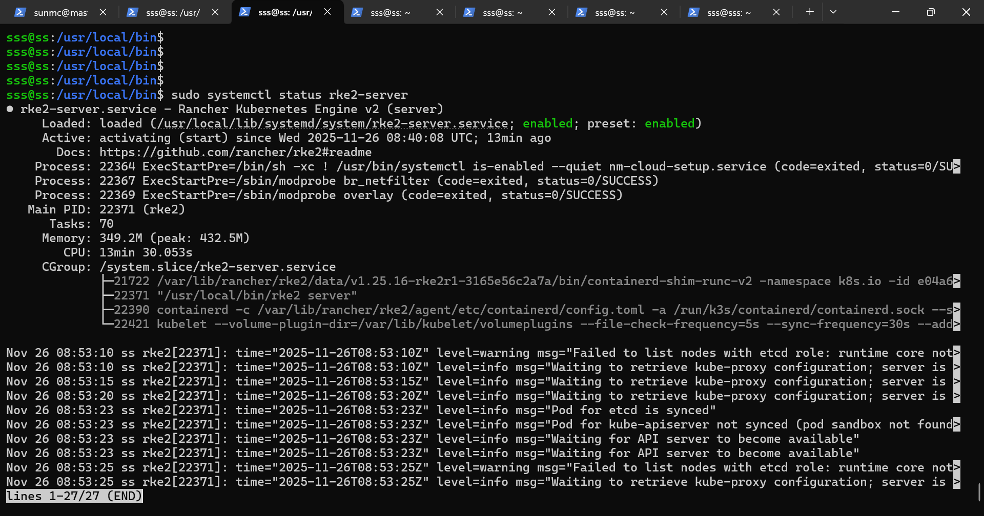 - 如果是 Helm Chart 安装,需要提供 Local 集群的类型(RKE1, RKE2, k3s, EKS, 等)和版本: