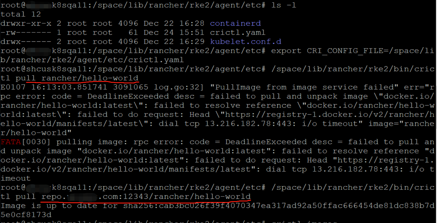 Failed to pull image “rancher/hello-world”: rpc error: code = DeadlineExceeded desc = failed to pull and unpack image “docker.io/rancher/hello-world:latest”: failed to resolve reference “docker.io/rancher/hello-world:latest”: failed to do request: Head “https://registry-1.docker.io/v2/rancher/hello-world/manifests/latest”: dial tcp 50.17.213.32:443: i/o timeout