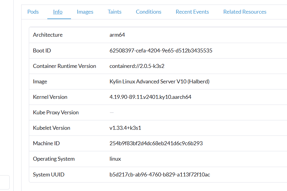 节点 CPU 架构、操作系统和版本::