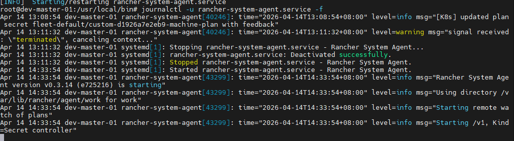 rancher页面中创建自定义集群,rke2的,然后日志就停在这里不动了
